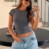 Take Me There Ribbed Baby Tee Charcoal